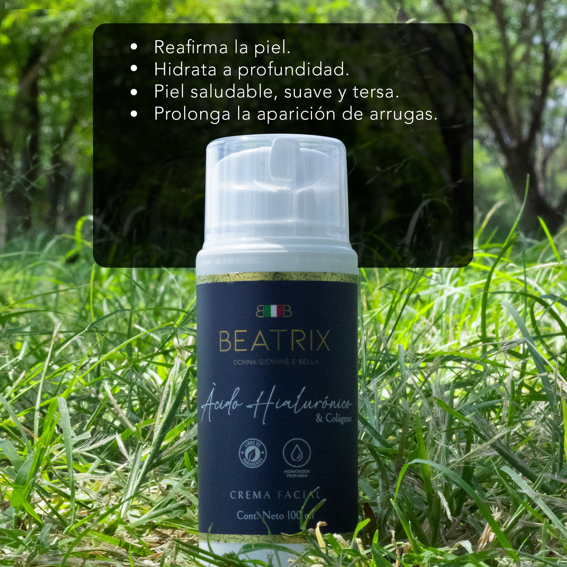 La crema de ácido hialurónico concentrado más colágeno, combina las propiedades de ambos ingredientes en un complejo 2 en 1 específicamente formulado con componentes que ayudan a aumentar la biodisponibilidad del ácido hialurónico y de las fibras del colágeno en las capas de la piel; coadyuvando así a prevenir y revertir los signos de la edad, brindando una piel suave tersa e hidratada.