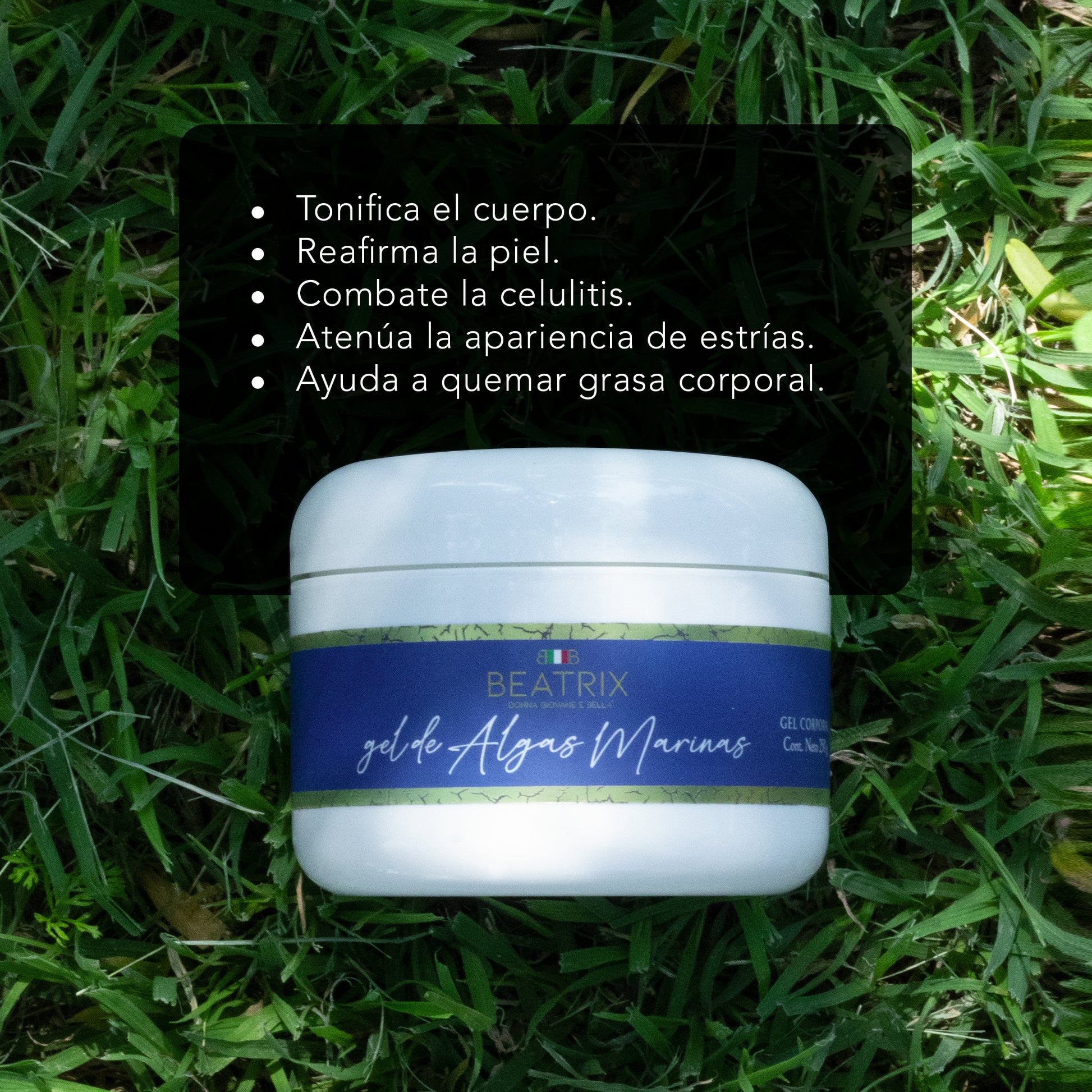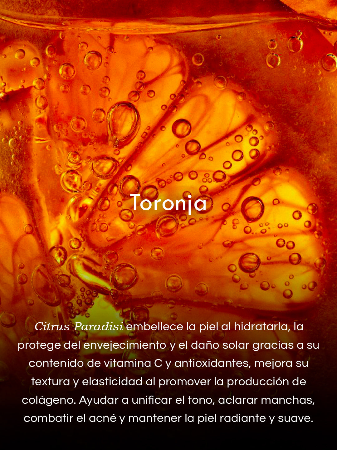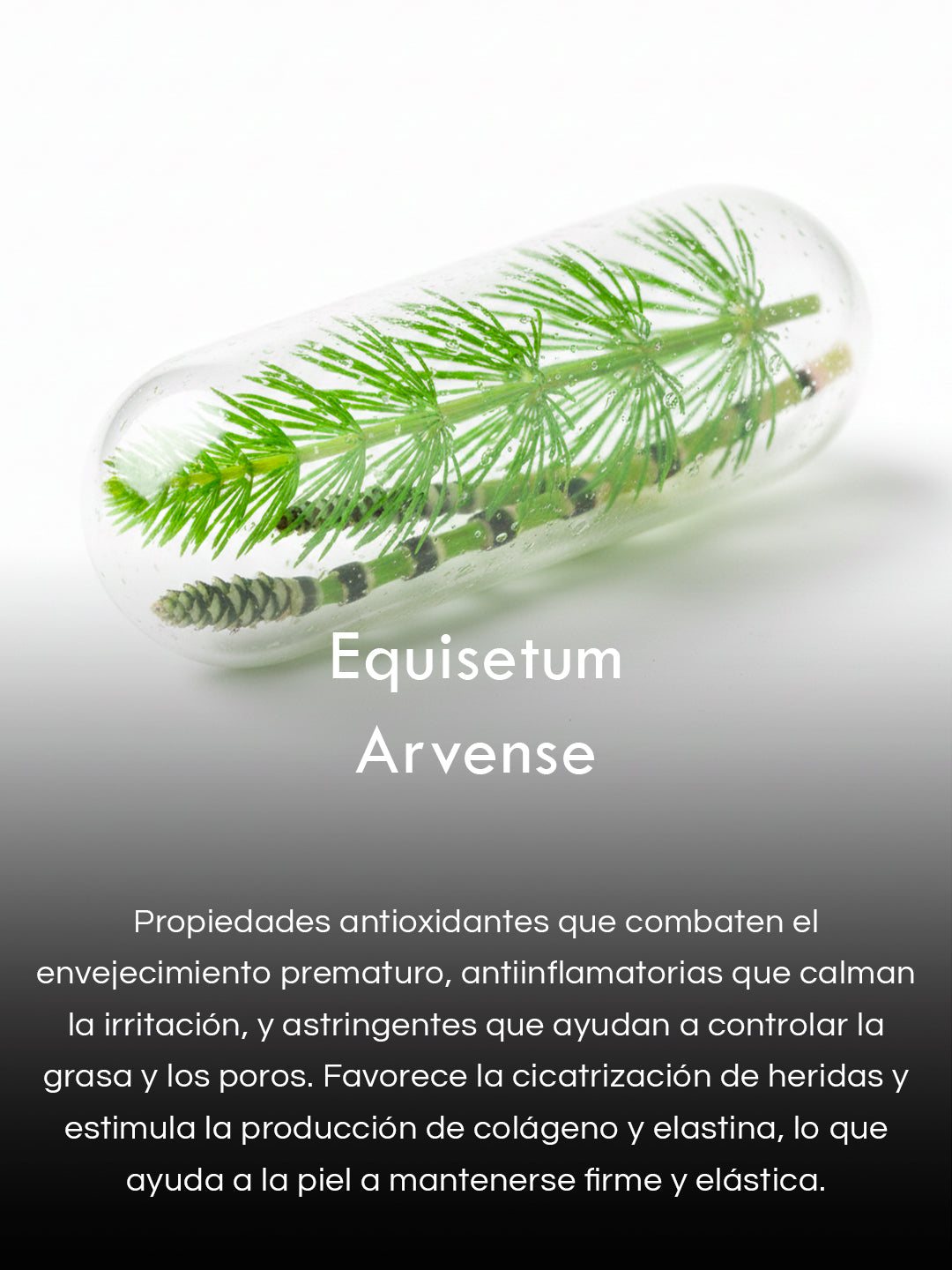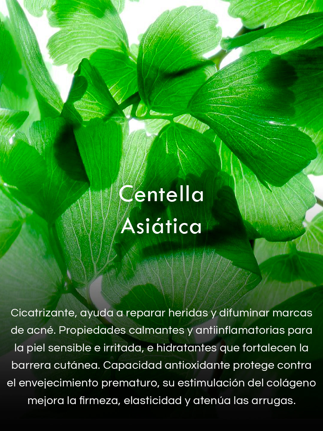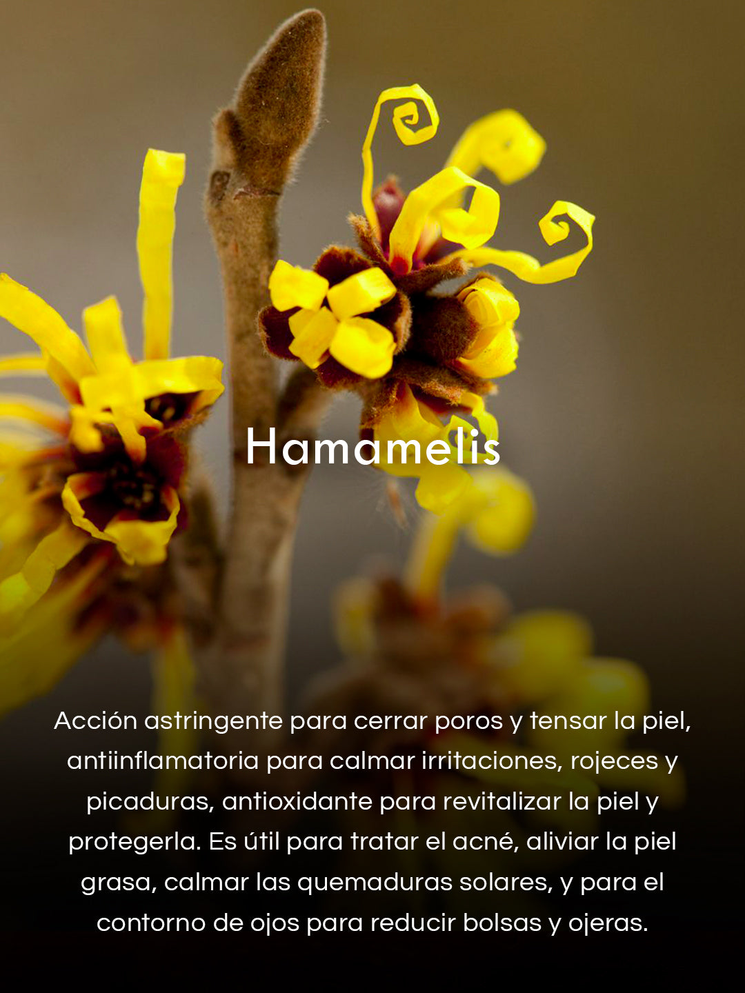 Algas marinas, Mentol natural, Hamamelis virginiana, Extracto de sábila, Aloe vera, Extracto de centella asiática, Aceite esencial de toronja.